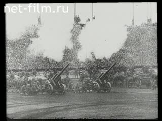 1918-1922.: Cavalry gallops, Soviet military leaders: Frunze, Voroshilov, Ordzhonikidze, Kirov, Molotov, Kalinin, distribution of leaflets with agitation trains.