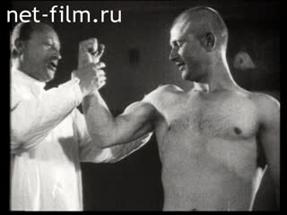 Doctor examines a rookie, feels the muscles.