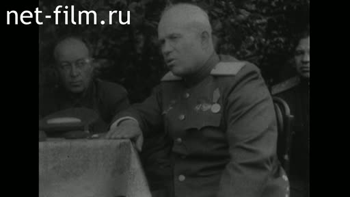 To liberate the city are Soviet soldiers, one playing the accordion.