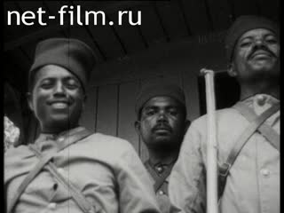Black soldiers of the colonial parts of "Free France" stand in formation during a practice session on the actions of calculating anti-aircraft gun.