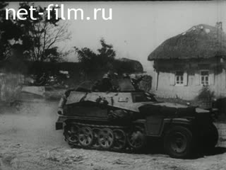 German motorcyclists chasing a runaway in the field of Soviet soldier.