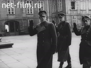 General Vlasov, accompanied by Minister of State Frank, walks past the guard of honor and enters the building.