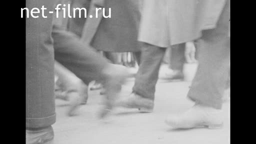 On the streets of Moscow passing cars, trucks, trams, horse-drawn cars, watching passers-by, one of them on a Bicycle.