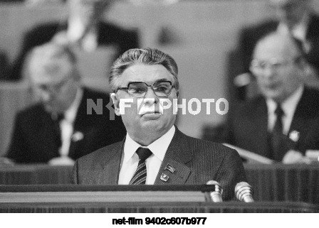 USSR. Moscow. Member of the CPSU Central Committee, Chairman of the Board of the Central Union of Consumer Cooperative Societies of the USSR Mikhail Petrovich Trunov during a speech at the 27th Congress of the Communist Party of the Soviet Union in the Kremlin Palace of Congresses. Yuri Lizunov, Alexander Chumichev/TASS
