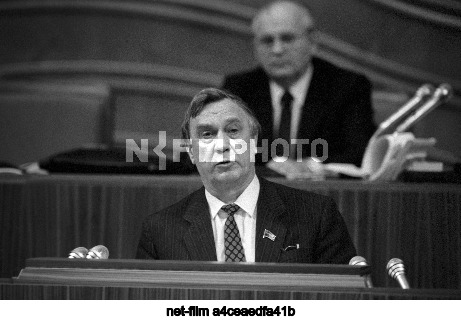 USSR. Moscow. Member of the Politburo of the CPSU Central Committee, People's Deputy of the USSR Gennady Ivanovich Yanayev, nominated by the President of the USSR Mikhail Sergeyevich Gorbachev for the post of Vice-President of the USSR, during a speech at a meeting of the Fourth Congress of People's Deputies of the USSR in the Kremlin Palace of Congresses. Valentin Kuzmin/TASS