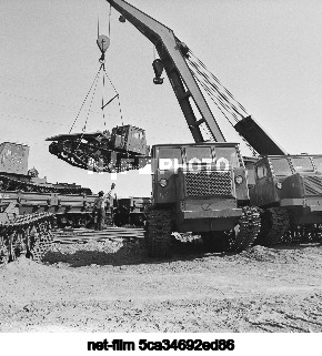 USSR. Altai Krai. Rubtsovsk. Loading TT-4 skidders onto railway platforms at the loading area of the Altai Tractor Plant named after M. I. Kalinin. Viktor Sadchikov/TASS