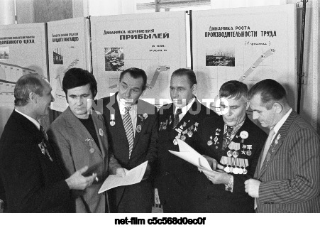 USSR. Chelyabinsk Region. Magnitogorsk. Participants of the International School of Advanced Experience in Metallurgy of the Magnitogorsk Iron and Steel Works named after V. I. Lenin: Hero of Socialist Labor, furnace operator of the Dnepropetrovsk Iron and Steel Works named after G. I. Petrovsky Ivan Sidorovich Tereshchenko, a rolling mill operator from Bulgaria G. Kalingin, a blast furnace operator from Czechoslovakia I. Klimek, Hero of Socialist Labor, furnace operator of the West Siberian Iron and Steel Works Vasily Demidovich Solomin, Hero of Socialist Labor, sulfuric acid shop operator of the Polevskoy Cryolite Plant Anatoly Eremeevich Boyarintsev, and steelmaker from the GDR G. Wiener (from left to right) during a conversation. Boris Klipinitser/TASS