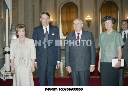 USSR. Moscow. The wife of the President of the USSR Raisa Maximovna Gorbacheva, the President of Finland Mauno Henrik Koivisto, the President of the USSR Mikhail Sergeyevich Gorbachev and the wife of the President of Finland Tallervo Koivisto (from left to right) during the farewell ceremony in the St. George Hall of the Grand Kremlin Palace. Yuri Lizunov, Alexander Chumichev/TASS