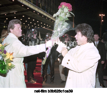 Russia. Moscow. Composer, poet and singer Oleg Mikhailovich Gazmanov and singer Lev Valerianovich Leshchenko (from right to left) during the ceremonial opening of O. M. Gazmanov's name plaque on the Square of Stars at the main entrance to the State Central Concert Hall "Russia" in the building of the hotel of the same name. Oleg Buldakov/TASS