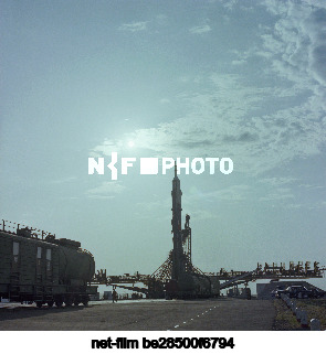 USSR. Kazakh SSR. Kyzylorda region. The Soyuz U launch vehicle with the Soyuz-T-9 spacecraft during preparation for launch from the Baikonur Cosmodrome launch complex. Valentin Kuzmin/TASS
