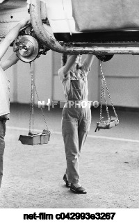 June 1991. USSR. Samara Region. Tolyatti. Work on the main conveyor of the Volga Association for the Production of Passenger Cars "AvtoVAZ" named after the 50th Anniversary of the USSR. The exact date of the photo is not established. Nikolay Nikitin/TASS