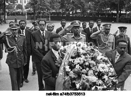 USSR. Moscow. June 25, 1969. Head of the military delegation of the Democratic Republic of Sudan, Brigadier General Mubarak Osman Rahma (center, background) during the wreath-laying ceremony at the Tomb of the Unknown Soldier. Vasily Yegorov/TASS