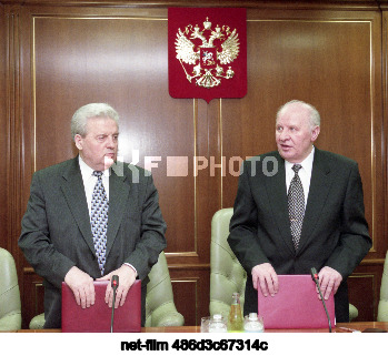 Russia. Moscow. Member of the Federation Council of the Russian Federation, Head of the Komi Republic Yuri Alekseevich Spiridonov and Chairman of the Federation Council of the Russian Federation, Governor of the Oryol Region Yegor Semenovich Stroyev (left to right) during the signing ceremony of the cooperation agreement between the regions. Oleg Buldakov/TASS