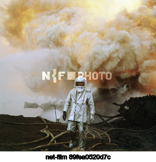 USSR. Dagestan ASSR. A firefighter in a heat-protective suit, going on reconnaissance in smoke and fire, while extinguishing a fire at the Tarki No. 7 oil exploration well in the Makhachkala region. Rudolf Dik/TASS