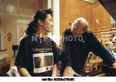 Russia. Moscow. South Korean pianist Hey-Jung and artistic director of the State Symphony Capella Gennady Nikolaevich Rozhdestvensky during a rehearsal before recording a joint performance in the Great Hall of the Moscow Conservatory. Alexander Nemenov/TASS