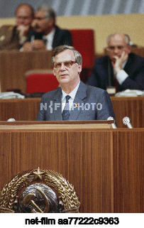 USSR. Moscow. Member of the Politburo of the CPSU Central Committee, Chairman of the USSR Council of Ministers Nikolai Ivanovich Ryzhkov during a speech at a meeting of the XXVIII Congress of the Communist Party of the Soviet Union in the Kremlin Palace of Congresses. Yuri Lizunov, Alexander Chumichev/TASS