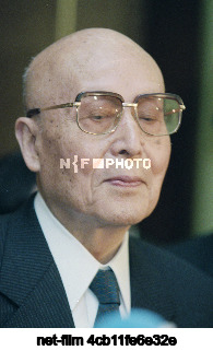 Russia. Moscow. Head of the Japanese parliamentary delegation, Chairman of the Japanese-Russian Parliamentary Friendship Association Yoshio Sakurauchi during a press conference after a meeting with Deputy Prime Minister of the Russian Federation Boris Yefimovich Nemtsov, dedicated to the development of a peace treaty between Russia and Japan. Oleg Buldakov/TASS