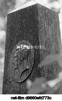 USSR. Leningrad. Obelisk on the grave of Russian poet Alexander Alexandrovich Blok. Installed according to the design of Soviet sculptor Nikolai Vasilyevich Dydykin in 1944 on the Literatorskie Mostki of the Volkovskoye Cemetery. Yuri Belinsky/TASS