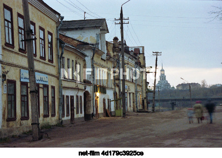 November 12-15, 1989. USSR. Kalinin Region. Torzhok. Houses along Tveretskaya Embankment (left), bridge over the Tvertsa River (background) and the Gate Church of the Savior and Bell Tower (background) on the territory of the Novotorzhsky Borisoglebsky Monastery. The exact date of the photo shoot is unknown. Igor Zotin/TASS