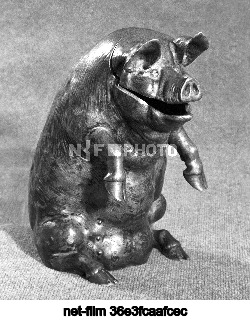 December 1-19, 1989. USSR. Moscow. Silver figurine of a pig produced by the House of Faberge. Gennady Khamelyanin/TASS
