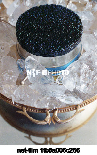 May 1 - June 14, 1990. USSR. Astrakhan Region. An open can of black caviar produced at the Caspian Caviar and Balyk Production Association, in a vase with ice. The exact date of the photo is unknown. Alexey Zhigaylov/TASS