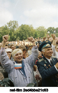 USSR. Moscow. Participants in a mass rally in defense of democracy at the House of Soviets of the RSFSR after the failed attempt by members of the State Committee on the State of Emergency in the USSR to carry out a coup d'etat in the country. In order to prevent the signing of the Union Treaty, which was supposed to replace the USSR with a new federation of sovereign states, members of the State Committee on the State of Emergency, led by the Vice President of the USSR Gennady Ivanovich Yanayev, removed the President of the USSR from power and declared a state of emergency in the country. Alexander Chumichev/TASS