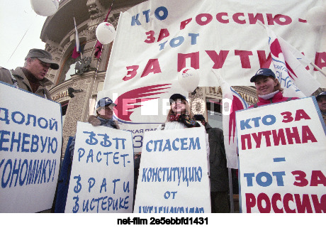 Russia. Moscow. A rally of supporters of the bill on the abolition of direct elections of heads of subjects of the Russian Federation, submitted for consideration to the State Duma of the Russian Federation on the initiative of Russian President Vladimir Vladimirovich Putin, near the National Hotel at the intersection of Tverskaya and Mokhovaya Streets. Oleg Buldakov/TASS