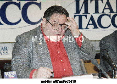 Russia. Moscow. People's Artist of the USSR, artistic director of the international festival "Musical Kremlin" pianist Nikolai Arnoldovich Petrov during a press conference at the Russian news agency ITAR-TASS. Yuri Mashkov/TASS