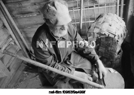 August 1989. USSR. Kalinin Region. Visually impaired Vasily Filippovich Filippov, who lives alone, during the preparation of inventory in the village of Sosnovets, Andreapolsky District. The exact date of the photo is unknown. Igor Zotin/TASS