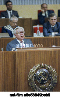 USSR. Moscow. Hero of Socialist Labor, People's Deputy of the USSR, member of the CPSU Central Committee, manager of the CPSU Central Committee Nikolai Efimovich Kruchina during a speech at a meeting of the XXVIII Congress of the Communist Party of the Soviet Union in the Kremlin Palace of Congresses. Yuri Lizunov, Alexander Chumichev/TASS