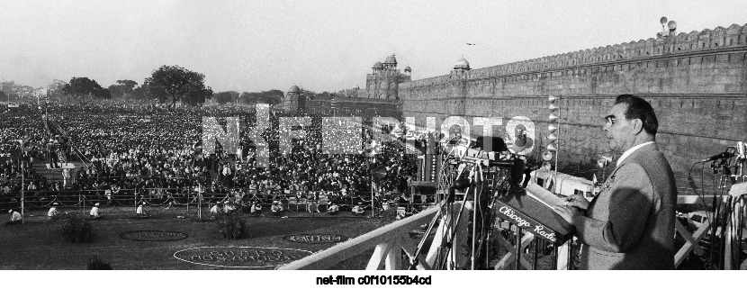 India. Delhi. General Secretary of the CPSU Central Committee Leonid Ilyich Brezhnev during a Soviet-Indian friendship rally on the square near the Red Fort. Vladimir Musaelyan, Valentin Sobolev/TASS