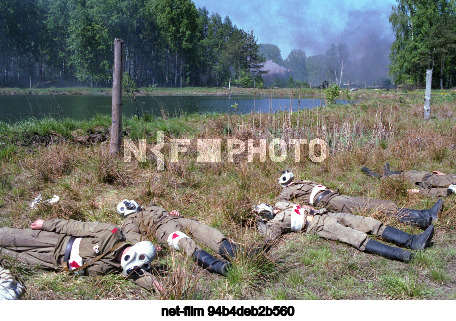 Russia. Moscow Region. Participants pretending to be wounded in the demonstration exercises of the Central Airmobile Detachment of the Russian State Committee for Civil Defense, Emergencies and Elimination of Consequences of Natural Disasters, held as part of the 2nd International Conference on Cooperation in Civil Defense and Disaster Protection. Oleg Buldakov/TASS