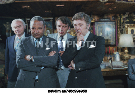 1-27 September 1979. USSR. Moscow. UNESCO Director-General Amadou-Mahtar Mbou and Soviet artist Ilya Sergeyevich Glazunov (left to right, foreground) during an inspection in the artist’s studio of a panel being prepared for UNESCO headquarters as a gift from the Soviet government. The exact date of the photo is unknown. Valentin Mastyukov/TASS