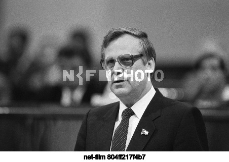 USSR. Moscow. Deputy of the Council of the Union of the Supreme Soviet of the USSR, member of the Politburo of the Central Committee of the CPSU, Chairman of the Council of Ministers of the USSR Nikolai Ivanovich Ryzhkov during a speech at a meeting of the fifth session of the Supreme Soviet of the USSR of the eleventh convocation in the Grand Kremlin Palace. Eduard Pesov/TASS