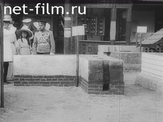 Николай II, члены его семьи и чины Свиты выходят из храма после торжественного молебна, рассаживаются в экипаже, экипаж трогается с места.