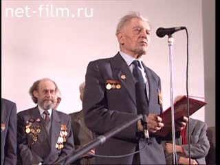 У здания Дома кинематографистов на Васильевской улице режиссер Л. Махнач встречает, разговаривает с кинодокументалистами-участниками Великой Отечественной войны, пришедшими на вечер, посвященный Дню Победы 9 Мая.