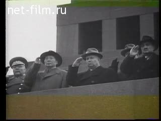 1962 год - К.Е.Ворошилов, В.Молотов, Г.М.Маленков, Г.К.Жуков, Н.С.Хрущев на трибуне Мавзолея.