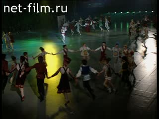 Международный фестиваль "Детский саммит": Выступление японских и советских детей на стадионе.