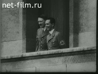 Гитлер и Геббельс приветствуют народ с балкона здания.