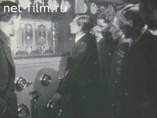 Нарком почт и телеграфов Смирнов поворачивает пусковые выключатели.