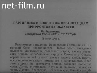 Текст Директивы Совнаркома СССР партийным и профсоюзным организациям прифронтовых областей.