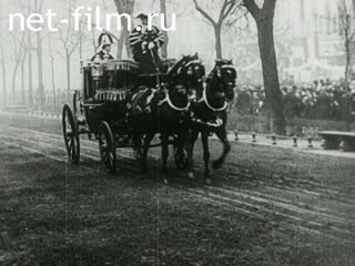 Проезжает кавалькада экипажей с кавалерийским эскортом.