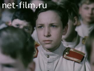 Кадетский бал на экране телевизора, Вальберг в кресле перед телевизором, за кадром звучат его воспоминания о жизни корпуса в период Октябрьской революции.