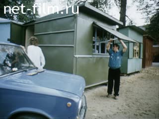 Женщина-продавец в небольшой частном ларьке(синхронно).