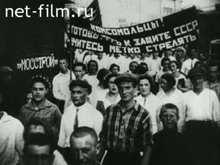 Первые летчики – комсомольцы, откликнувшиеся на боевой клич: «Комсомолец, на самолет!», у самолета, садятся в самолеты – средний план.