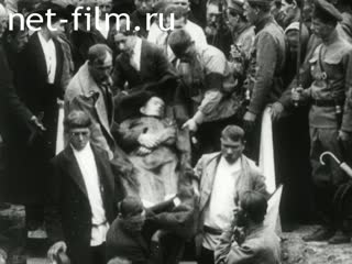 Гробы с телами жертв контрреволюционного мятежа в Саратове в мае 1918 года спускают по деревянной лестнице в братскую могилу.