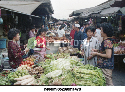 Февраль 1990 г. Таиланд. Бангкок. Продавцы и покупатели на одном из овощных базаров города. Точная дата съемки не установлена. Владимир Мусаэльян/ТАСС
