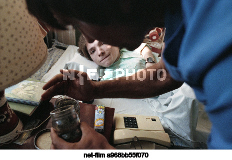Лето 1990 г. СССР. Астрахань. Инвалид детства Антон Борисов (на дальнем плане), болеющий несовершенным остеогенезом, и его друг в комнате Астраханского дома инвалидов и престарелых. Точная дата съемки не установлена. Игорь Зотин/ТАСС
