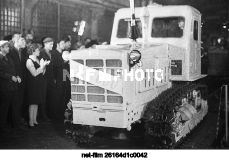 СССР. Алтайский край. Рубцовск. Полумиллионный трактор модели Т-4А, сходящий с главного сборочного конвейера Алтайского тракторного завода имени М. И. Калинина. Евгений Логвинов/ТАСС