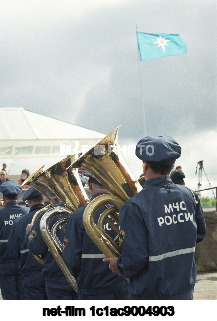 Россия. Московская область. Один из оркестров Министерства Российской Федерации по делам гражданской обороны, чрезвычайным ситуациям и ликвидации последствий стихийных бедствий во время показательных учений Российского национального корпуса чрезвычайного гуманитарного реагирования при МЧС России, проходящих в рамках V Международной выставки "Предупреждение, спасение, помощь-98" на полигоне в окрестностях города Ногинска. Олег Булдаков/ТАСС